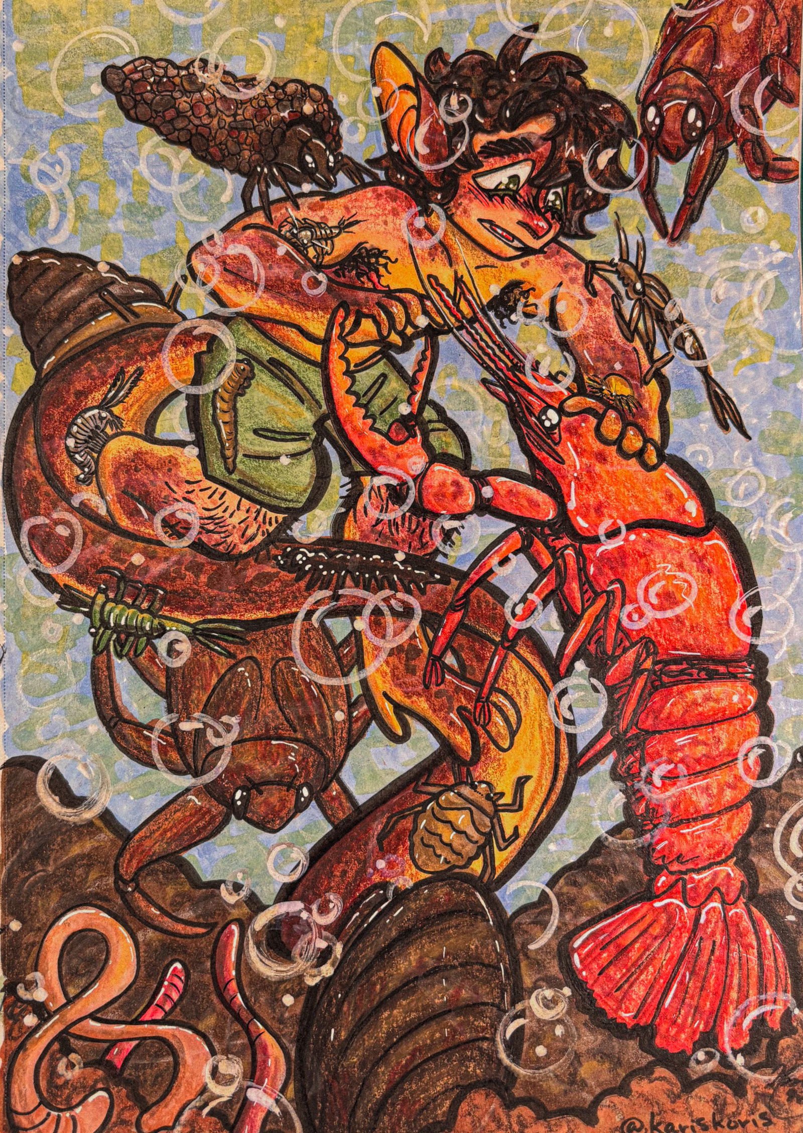 A celebration of Spring and the fresh-flowing streams that she brings, this piece was done on 03/23/2026 using crappy dollar store alcohol markers, decent colored pencils, and standard inks in my sketchbook.